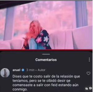 Dises que te costó salir de la relasión que teníamos, pero se te olbidó desir qe comensaste a salir con Feid estando aún conmigo.