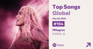 Su tema «Milagro» ha reingresado con fuerza al Top 200 Global de Spotify, posicionándose en el puesto #194 con nada menos que 1,180,855 streams diarios. 💥